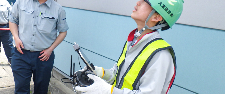 1日目は佐藤社長のお話の後、ドローン操縦体験やバックホウ・ドーザー等の建設機械を体験しました。